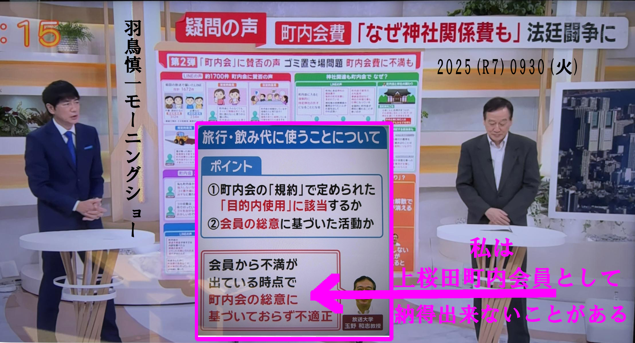 2025(R7)/09/30(火)羽鳥慎一モーニングショーで取上げられた町内会問題 | ![]() |